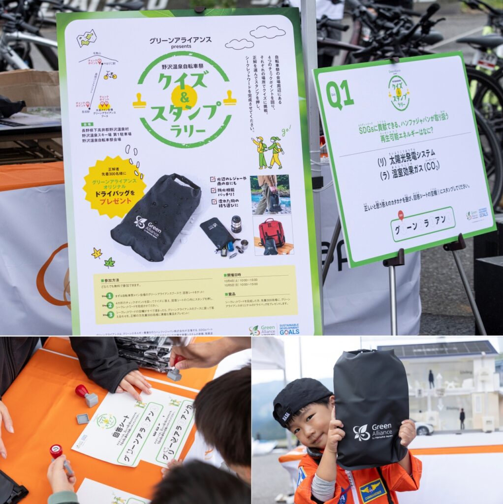 昨年に続き、今年もグリーンアライアンスが大会メインスポンサーとして後援。ブースを出展し、「クイズ&スタンプラリー」を実施したほか、「再生可能エネルギーのサイクル」に関する展示や実演も行い、モビリティの新しい形を来場者に紹介しました。また、関係者自身もe-Bikeを利用して大会に出場。「エコフレンドリーなモビリティ」の、日常利用の枠を超えたよりアクティブな活用を、自らの走りで発信しました。